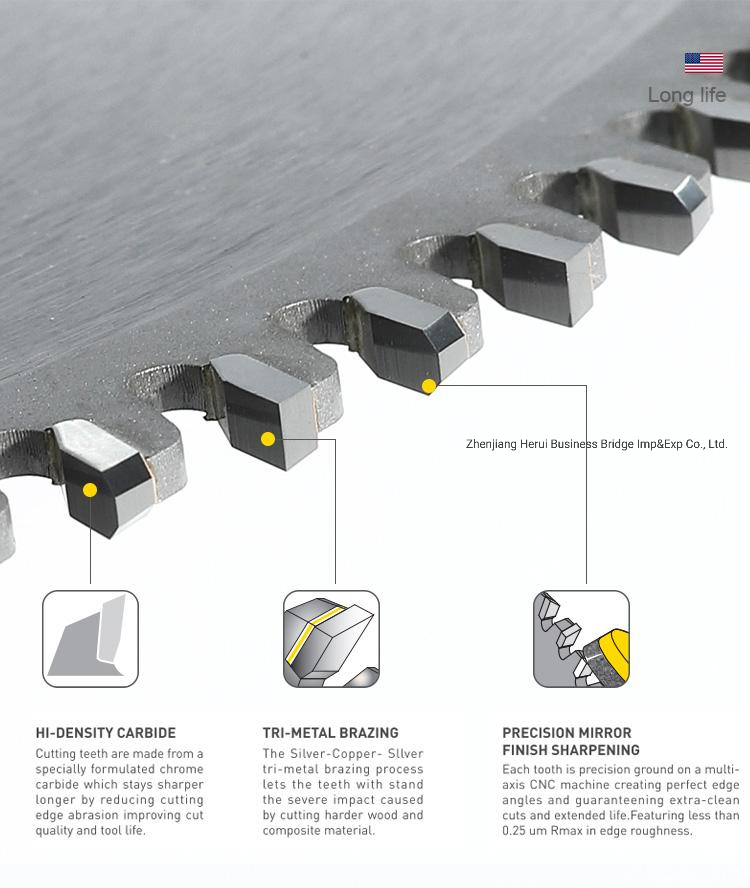 Product DescriptionPlace of OriginZhenjiang, China(Mainland)Product NameTCG Saw Blade Aluminum Tungsten Carbide Tipped Circular Saw blade Aluminum and Metal CuttingBrand NameHRTypeTCTTip MaterialTungsten CarbideBody MaterialSpecial SteelFinishingVarnish or as Your RequestDiameter6"150mm-48"......